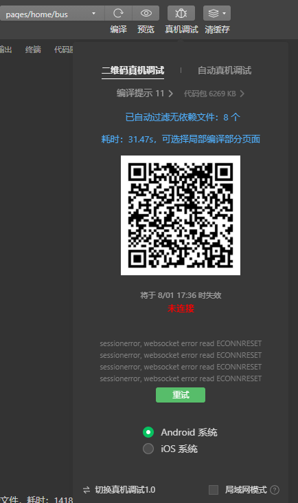 检查下是否是网络问题,手机删除小程序,工具清除缓存重试下