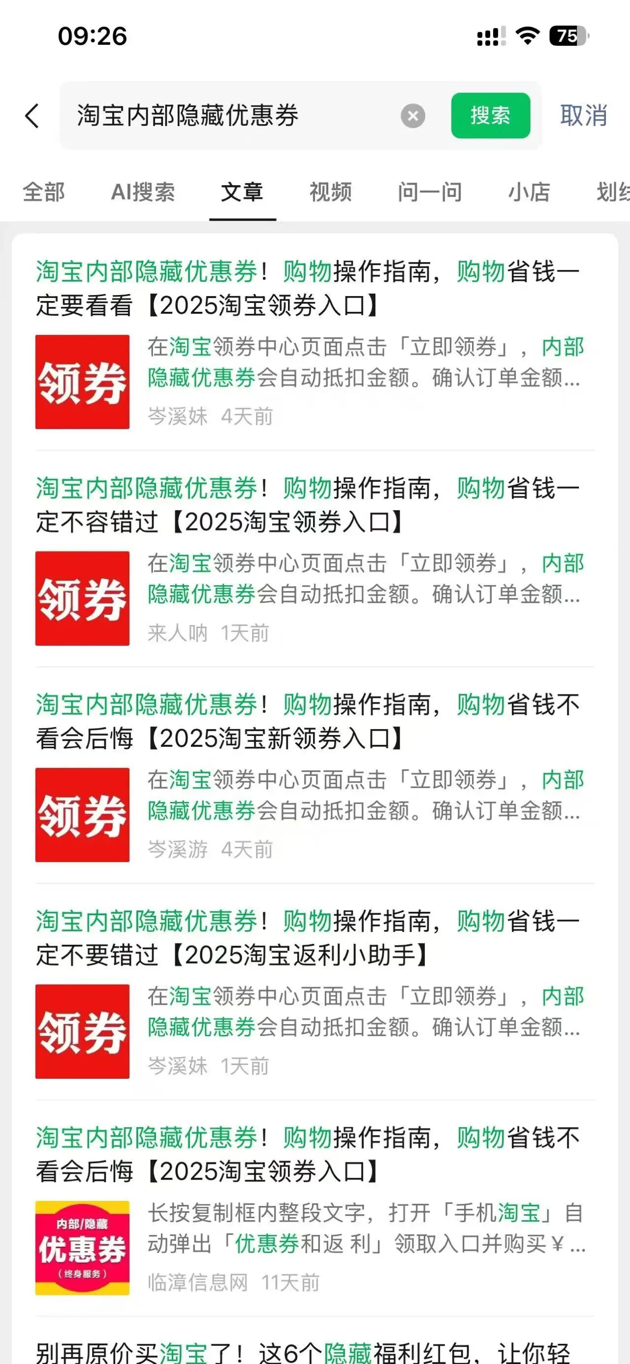 搜一搜霸屏关键词:淘宝内部隐藏优惠券