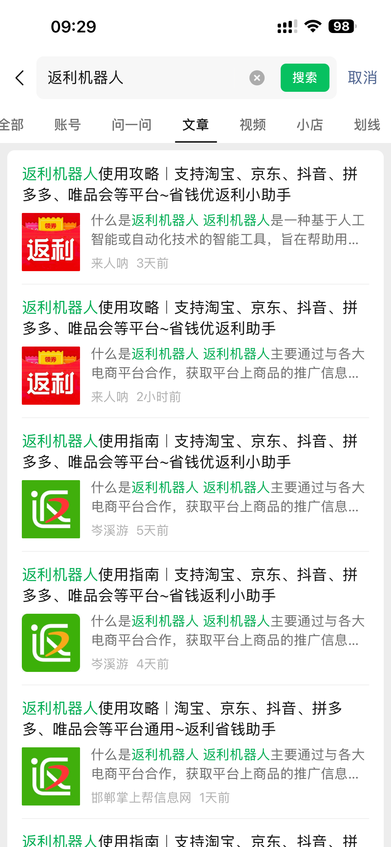 搜一搜霸屏关键词:返利机器人