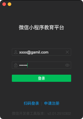 问题产生:以上版本在设置中切换教育版本后,重新打开微信小程序开发者工具,输入完账号密码后,第一次点击登录无响应,二次点击后,则页面显示空白无任何内容