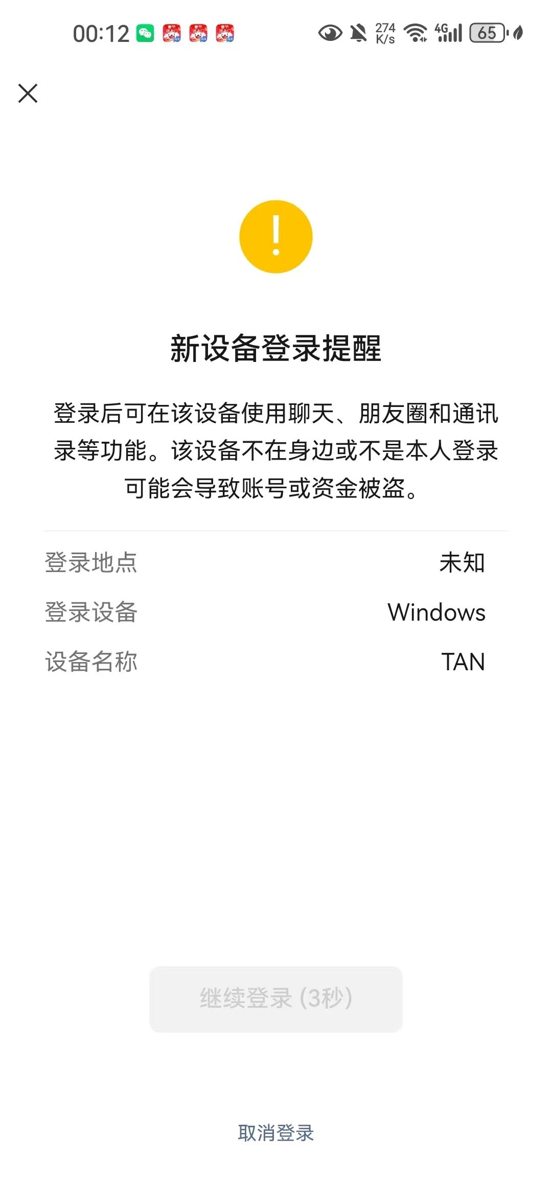 我这台电脑已经用了半年多了,最近突然遇到几次微信客户端自动下线,然后跳出登录环境异常的提示,如果重新扫二维码登录,则提示在新设备登录。但我这台电脑稳定登录这个微信已经半年多了,而且这台电脑只登录这一个微信,这个微信号也固定在这台电脑和一台手机登录,怎么老是会环境异常呢?