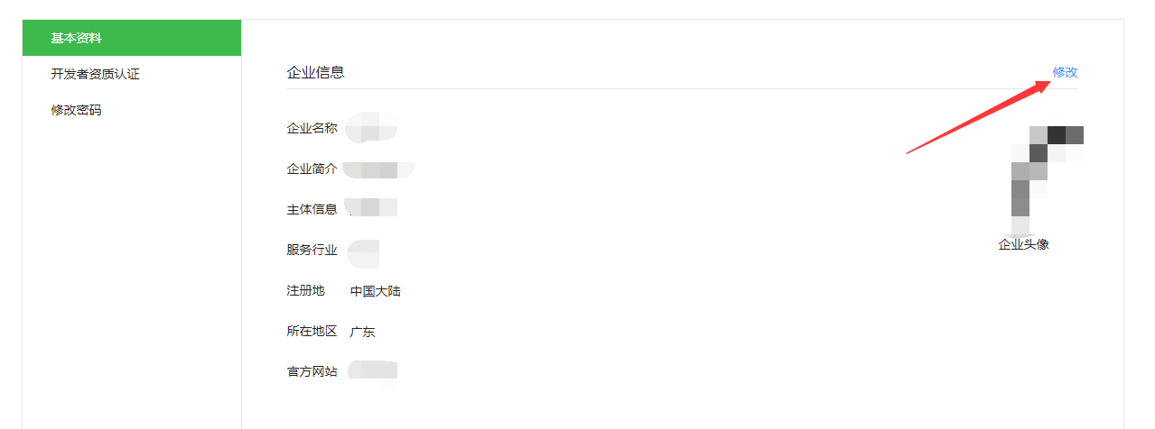 微信开发平台怎么修改企业信息(原来的企业注销了,重新注册了新企业)