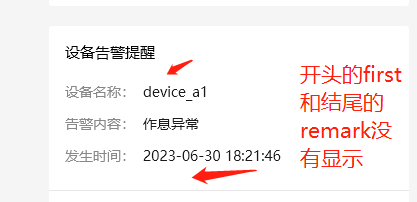 以这个为例子,我设置的keyword1,keyword2都生效,但是first和remark这两个参数不生效,公众号推送的时候只能看到标题和报告主题和生成时间,没有首尾的两段文字