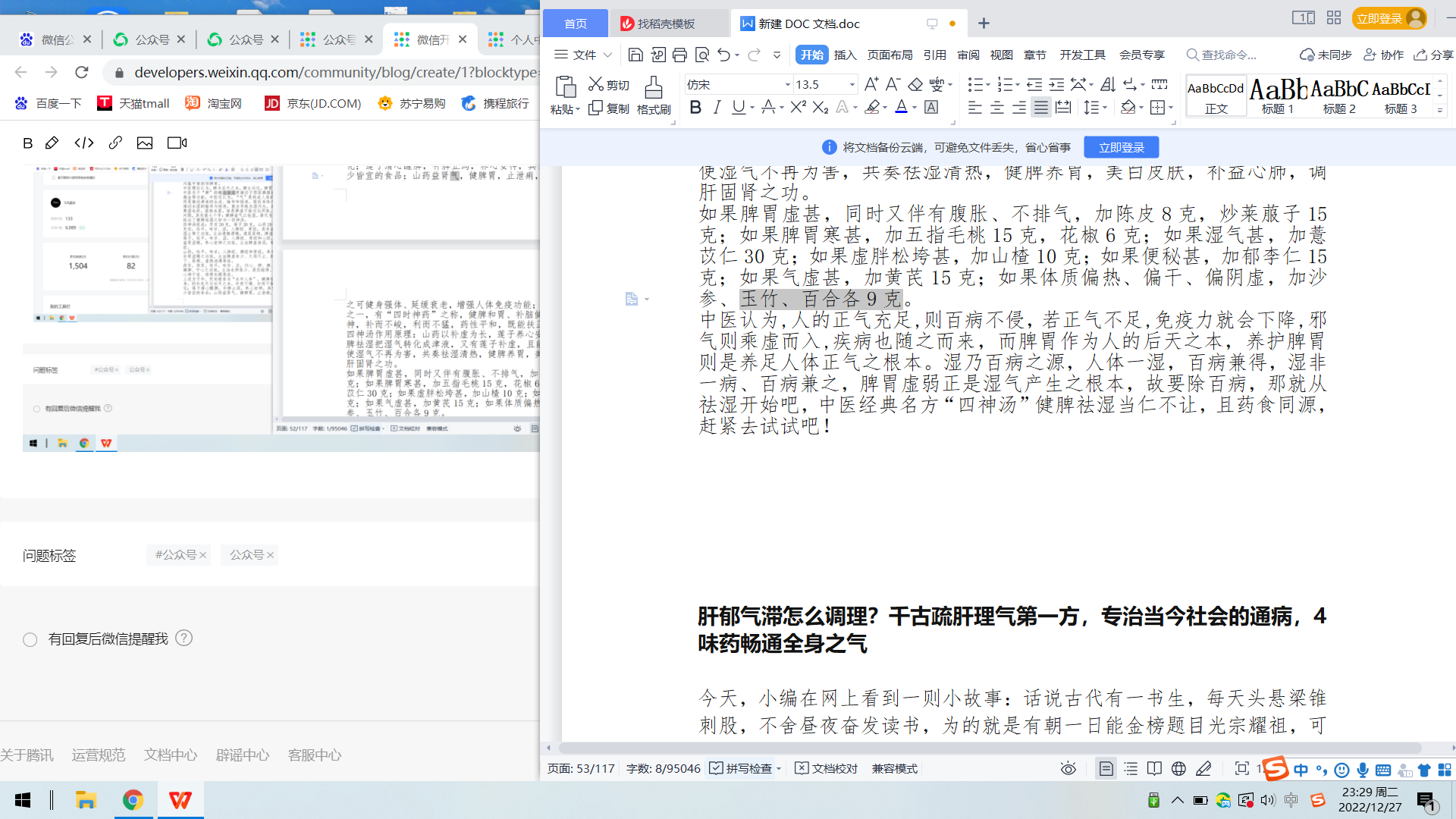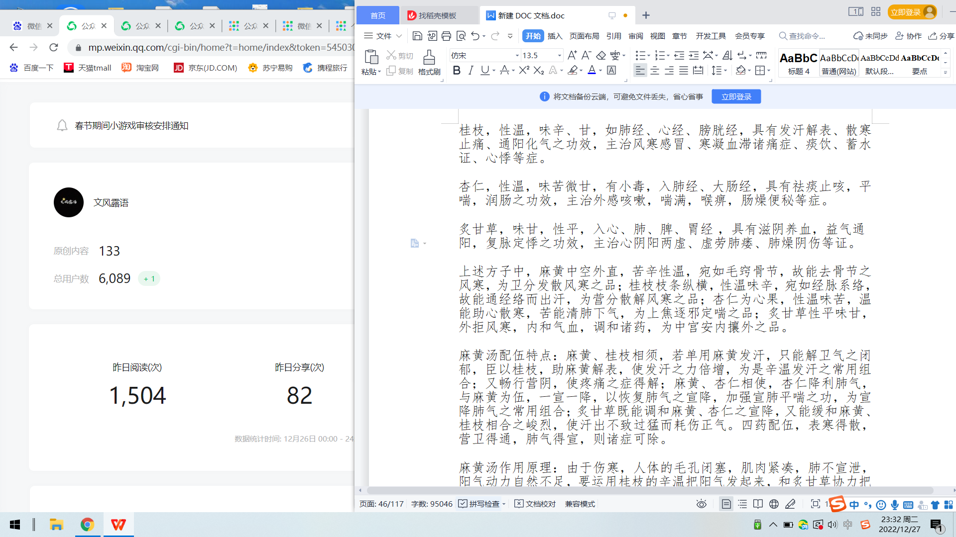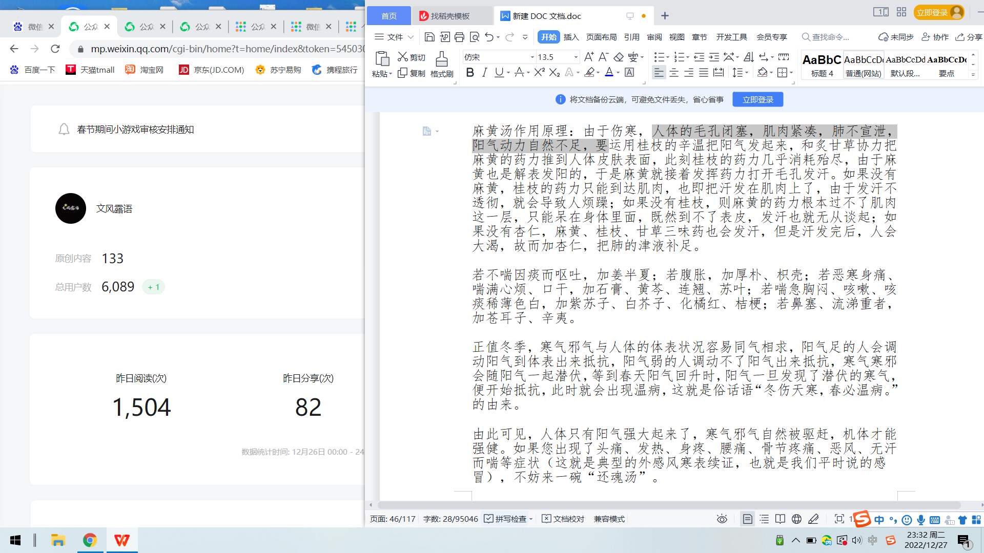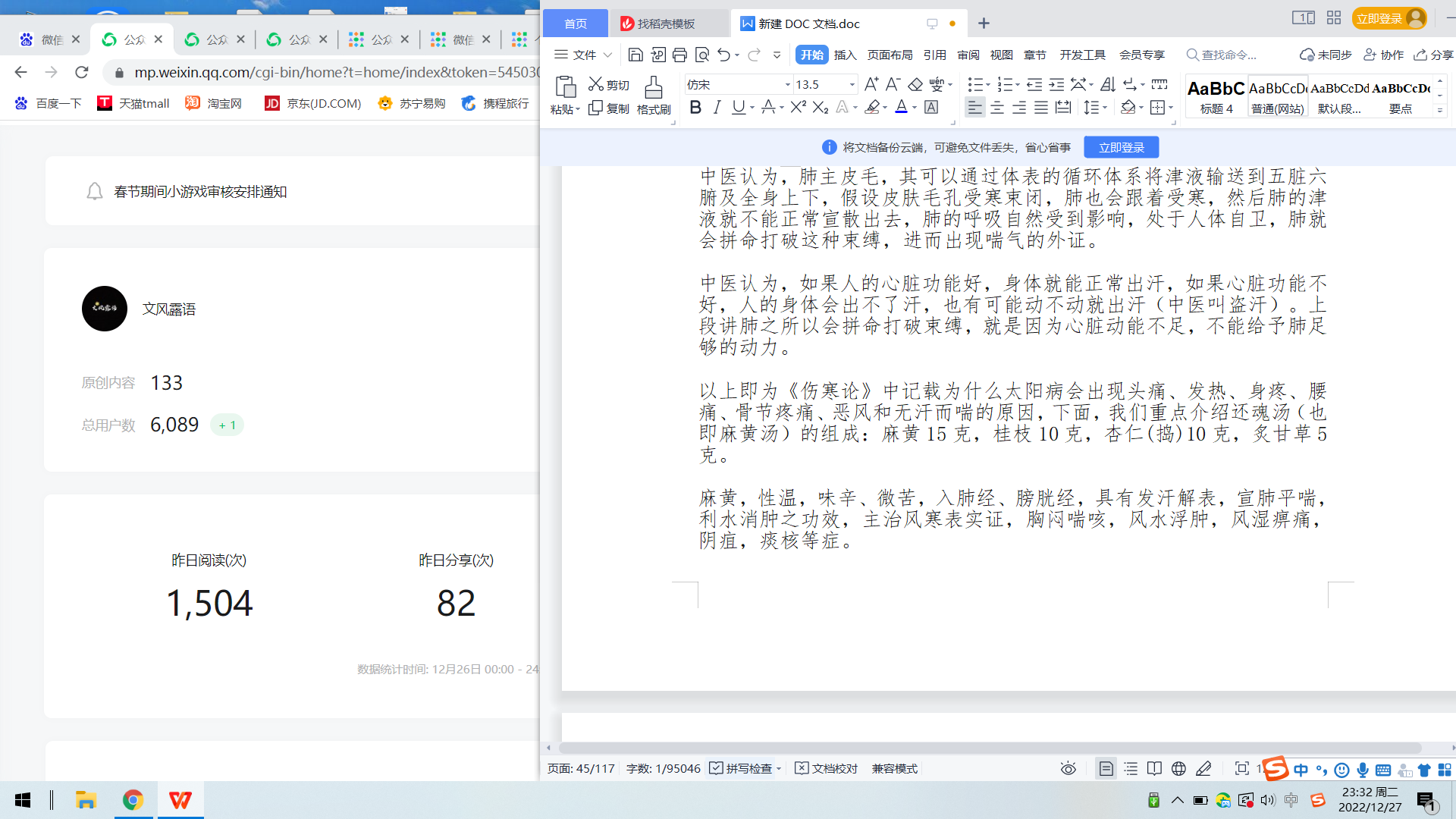 本人微信公众号名称:文风露语。原始ID:gh_d7542e5af1cf。12月份,本人公众号刚做的有起色,就被接二连三的举报,尽管成功申诉成功3篇文章,但是公众号的阅读量和粉丝量均大幅下降,每当原创功能刚刚恢复,不停的更文,刚有起色,就又被恶意举报,然后再次被限制功能。我实在是搞不明白,我到底抄袭谁的文章了,网络查重率达到多少为洗文?中医的草药功用和方剂都是自古都有的,比如大家带都知道 人参是补益的,难道我非要说人参是攻下的才叫原创?好好的一个公众号居然被举报的没法继续写下去,到底写那些文章有没有用,平台可以查询读者后台的留言,为什么别人一举报,就要限制公众号的各种功能?望平台能再次给予指点,谢谢!