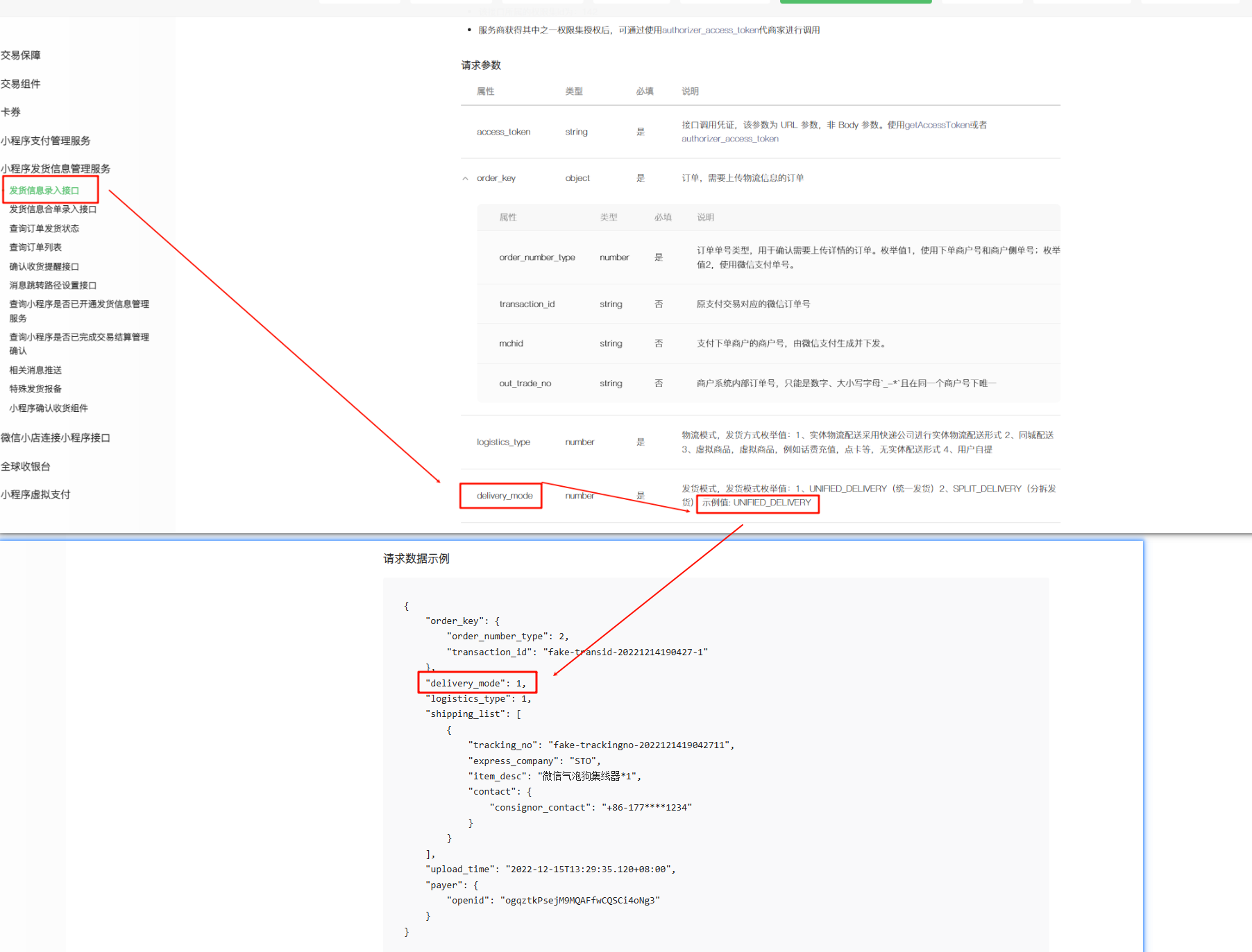 发货模式,发货模式枚举值:1、UNIFIED_DELIVERY(统一发货)2、SPLIT_DELIVERY(分拆发货) 示例值: UNIFIED_DELIVERY。
