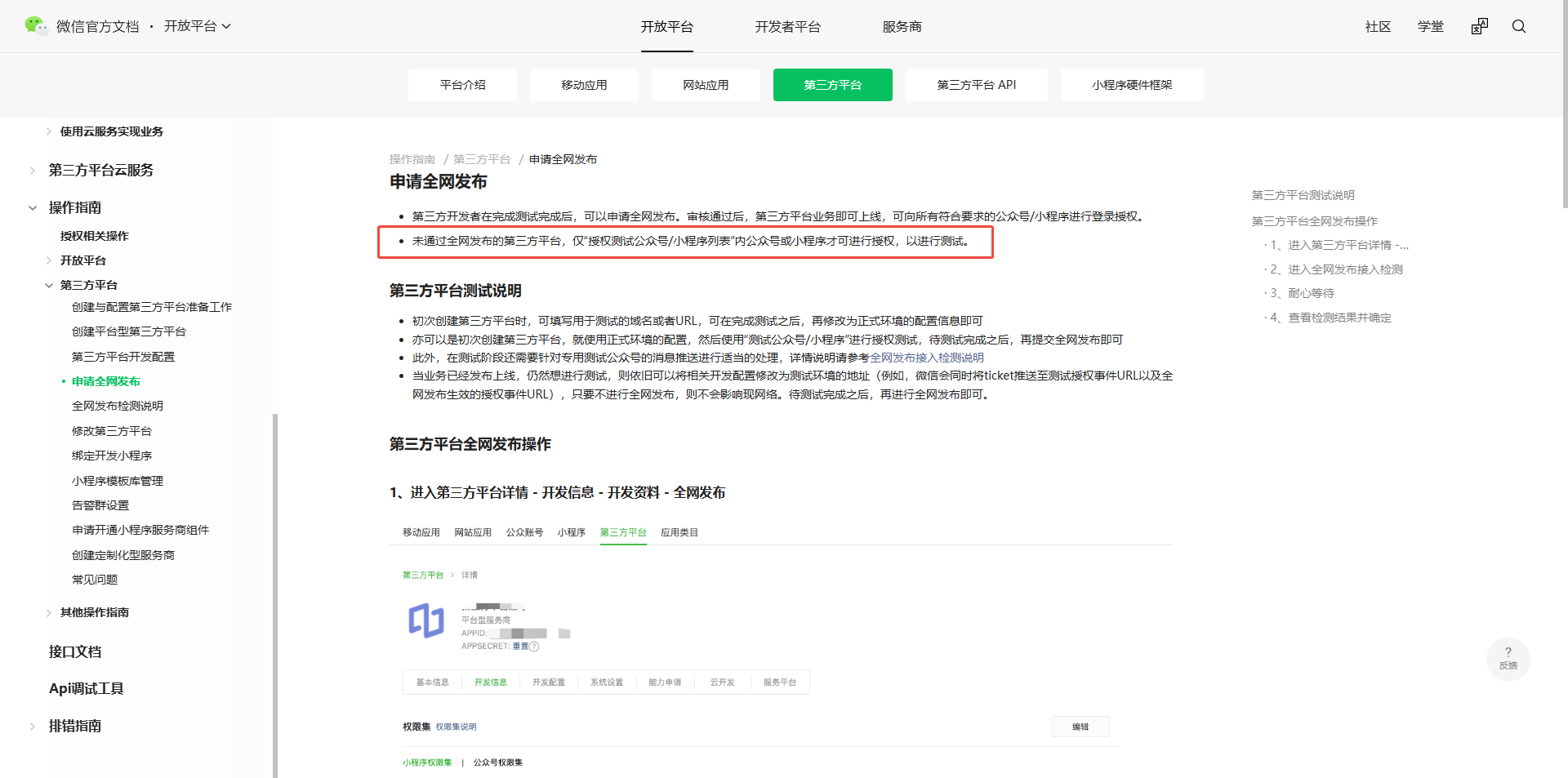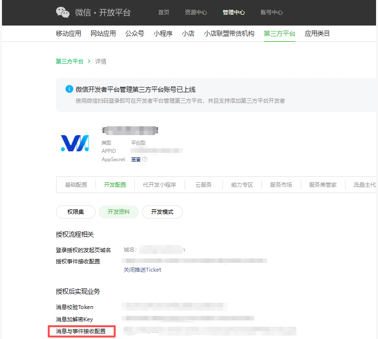另外,可参考第三方平台开发资料配置详细说明 https://developers.weixin.qq.com/doc/oplatform/Third-party_Platforms/2.0/operation/thirdparty/prepare.html#%E5%BC%80%E5%8F%91%E8%B5%84%E6%96%99%E8%AF%A6%E7%BB%86%E8%AF%B4%E6%98%8E
