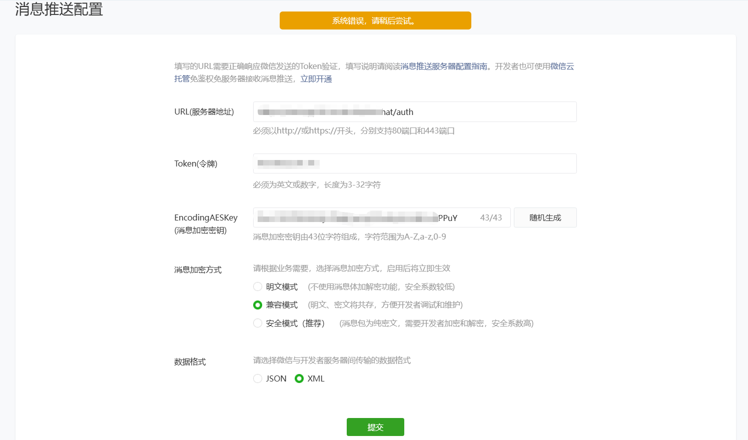 之前开通过云开发,尝试开通过消息推送至云函数,后来删除了云环境,但是发现小程序后台消息推送无法再配置推送消息给后台地址了,2年了,问题依旧,之前也努力找过微信各方,都是没有回应,真的希望官方能帮我解决一下这个问题,也真诚希望微信能越办越好,谢谢!