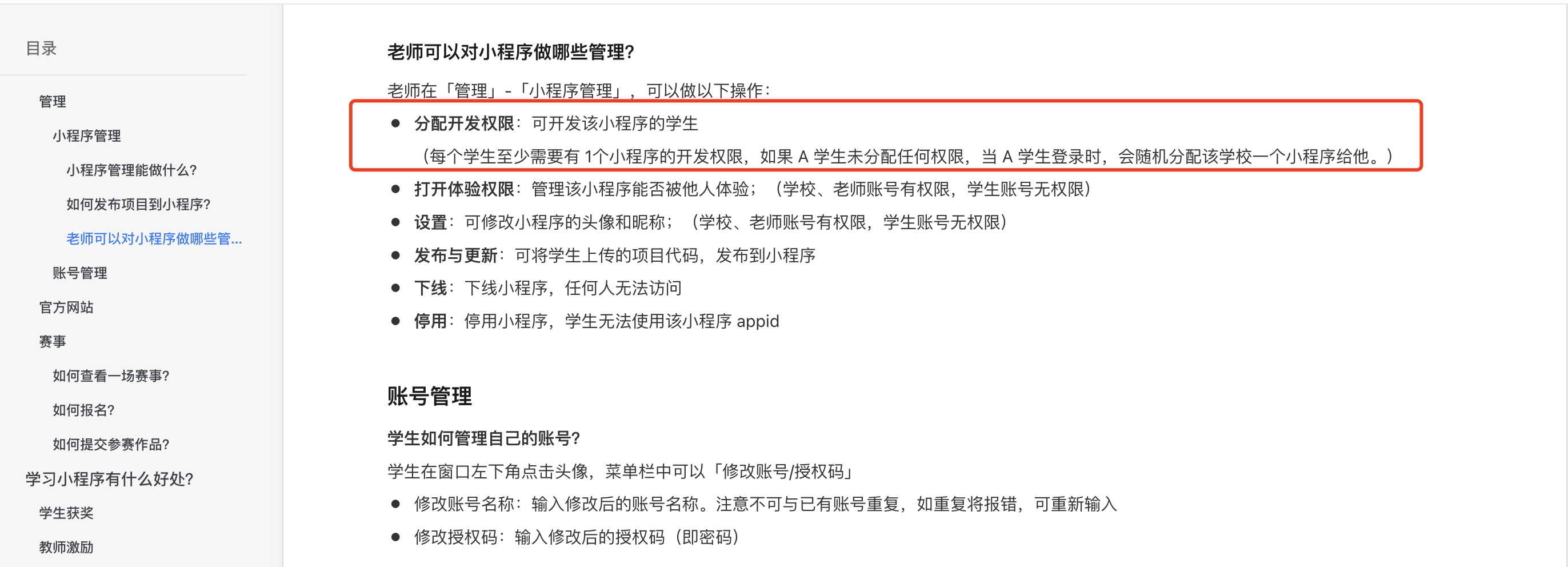 老师可以在小程序管理中,管理 appid 下的学生开发权限: