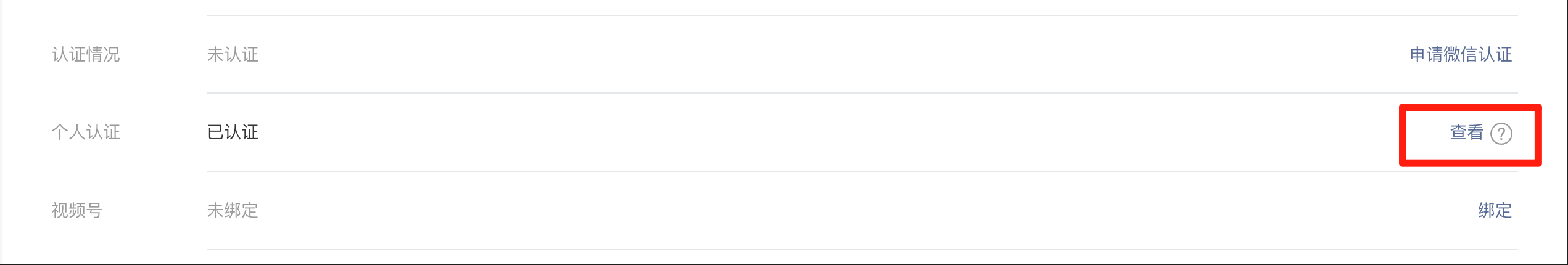 当前页面下方的“个人认证”一栏,点击右侧的「查看」进入。