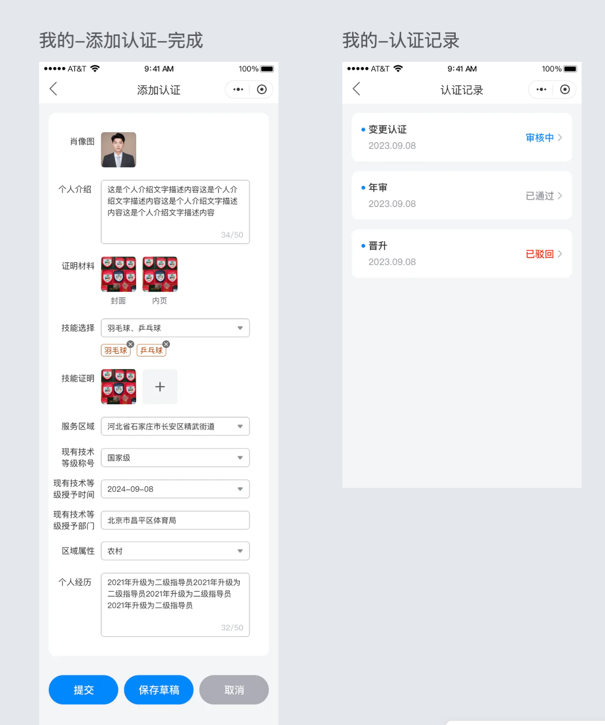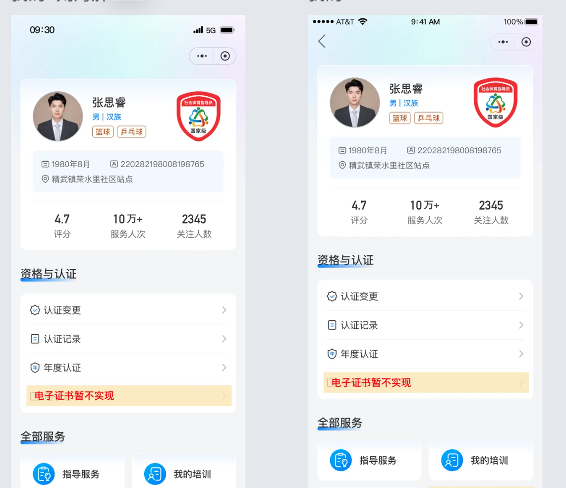 【运营内容】 小程序提供在线认证社会体育指导员功能,认证资料提交前需要进行人脸核身,申请开通功能