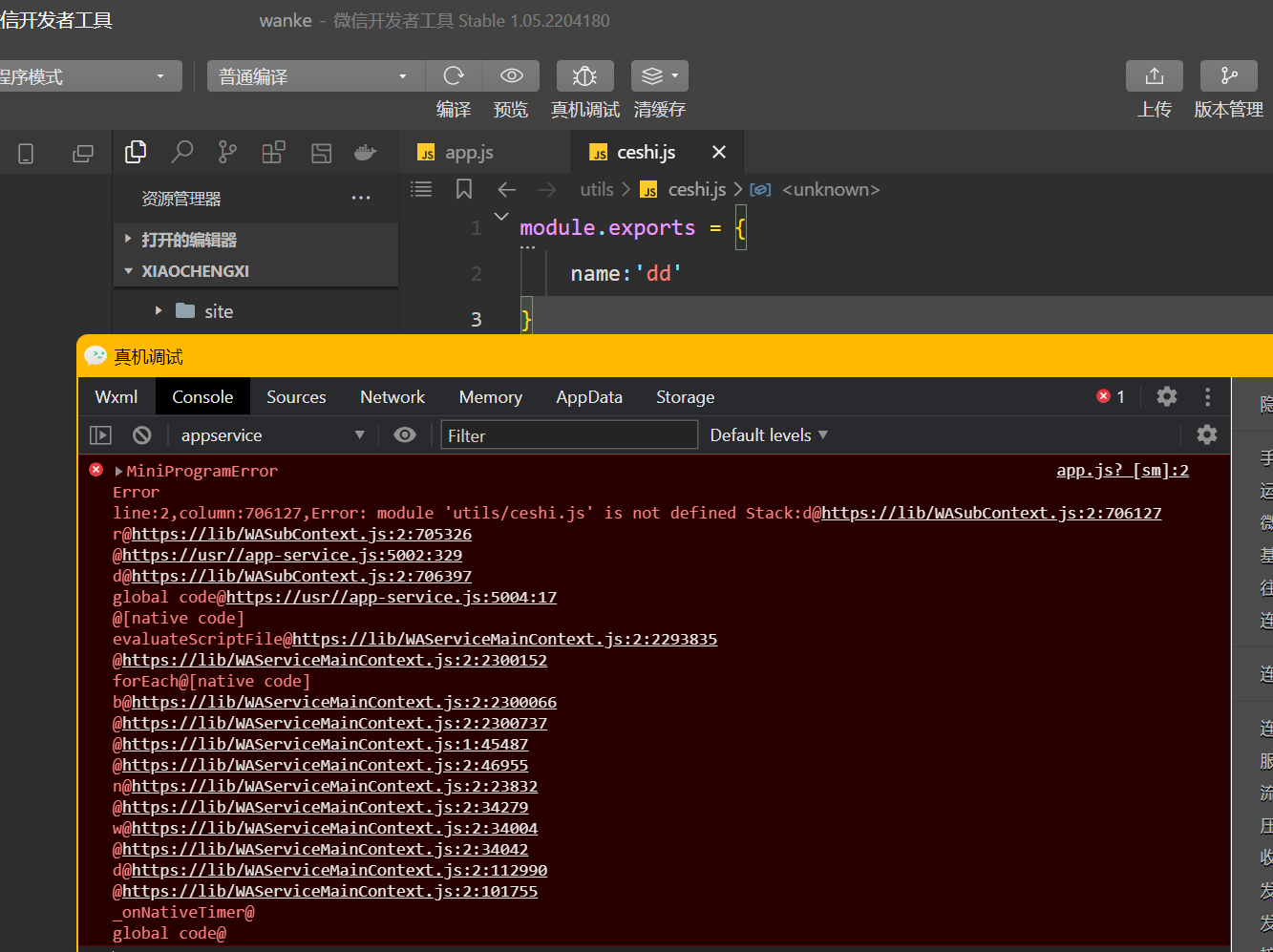 在app.js引入 utile目录下的js文件报错