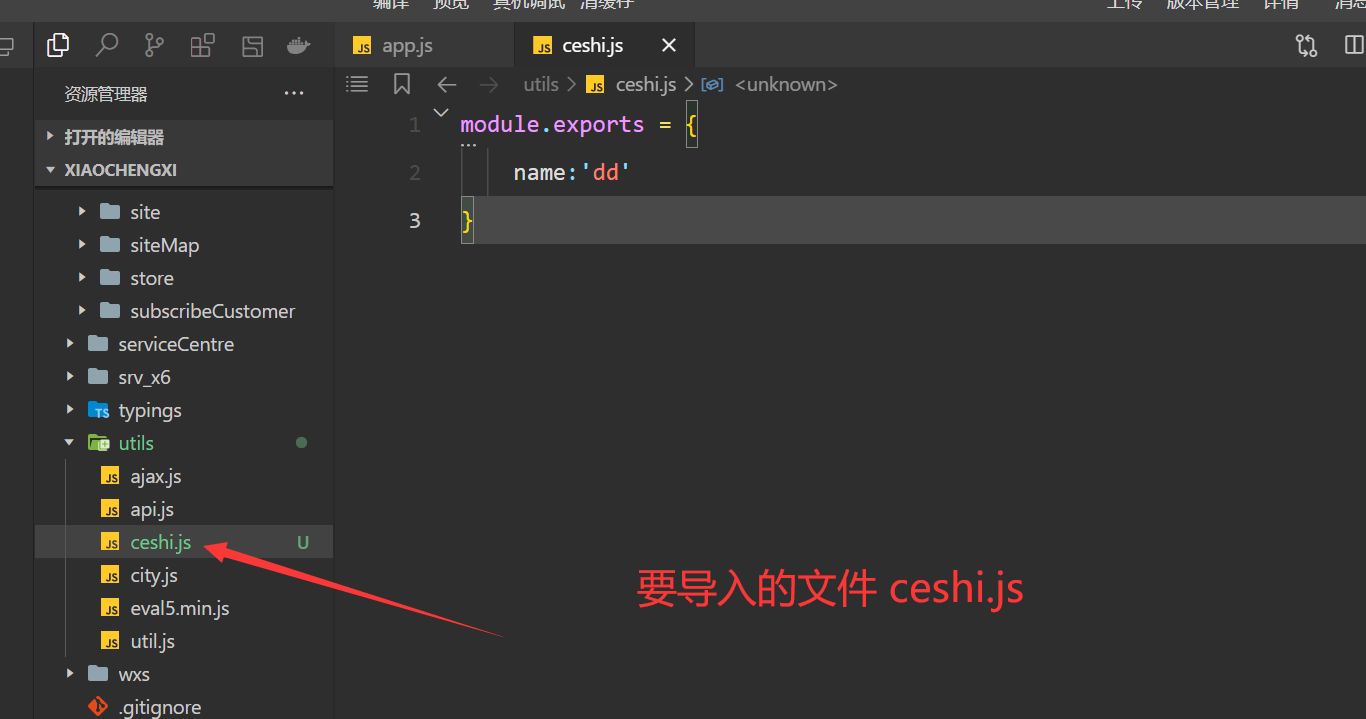 app.js引入ceshi.js