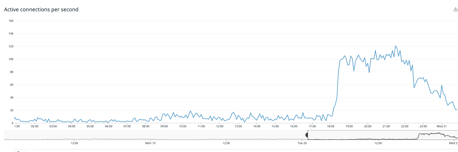 另外一个现象, 就是并发数突然变大了10倍, 有点猝不及防!