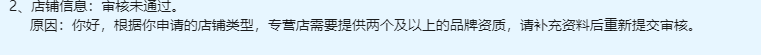 已经在补充资料那边,提供了另一份品牌资质的资料,还是显示需要提供2个品牌资质