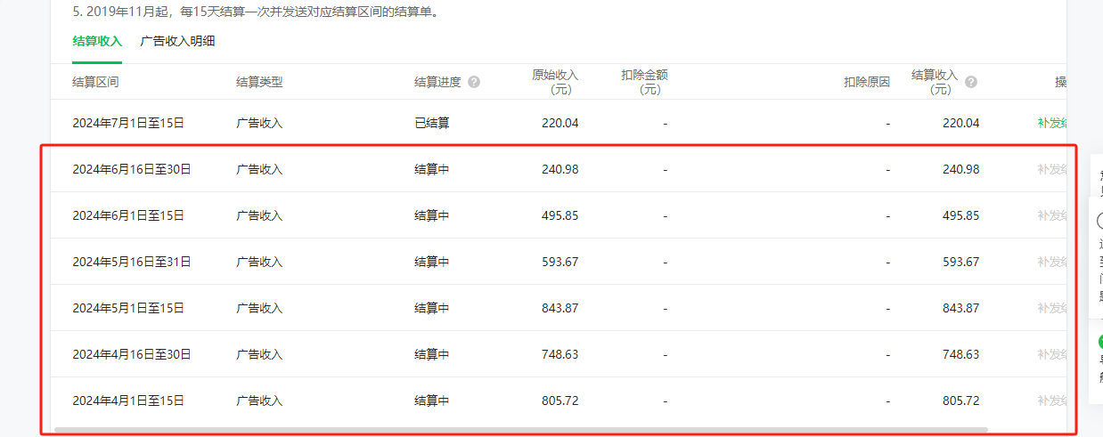 补结与正常结算的流程是不一样的,补结流程涉及的程序较多,时间较长,历史结算区间的结算进度将在一段时间内保持在“结算中”状态。流量主无需焦虑,补结成功后会下发结算单至对应的结算邮箱的,还请耐心等待后续留意。