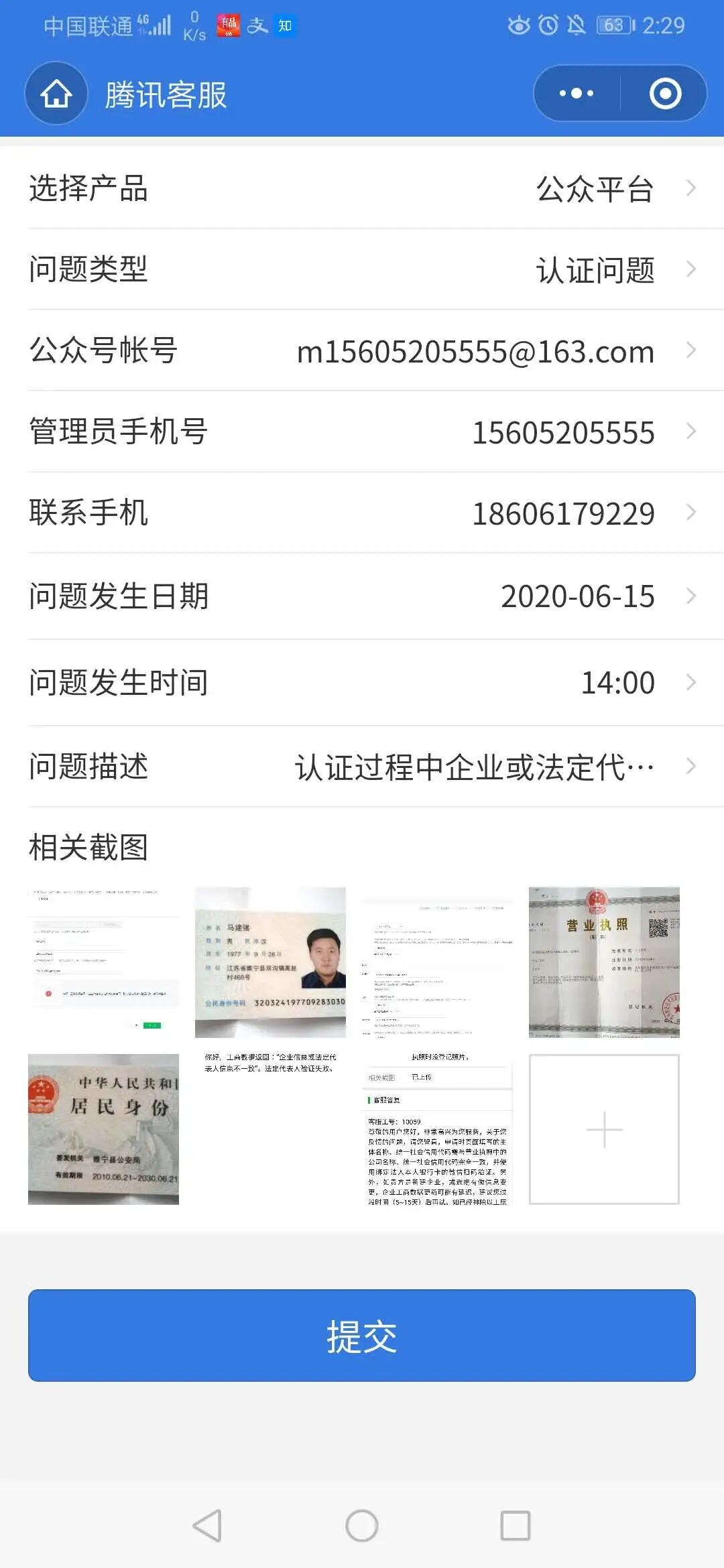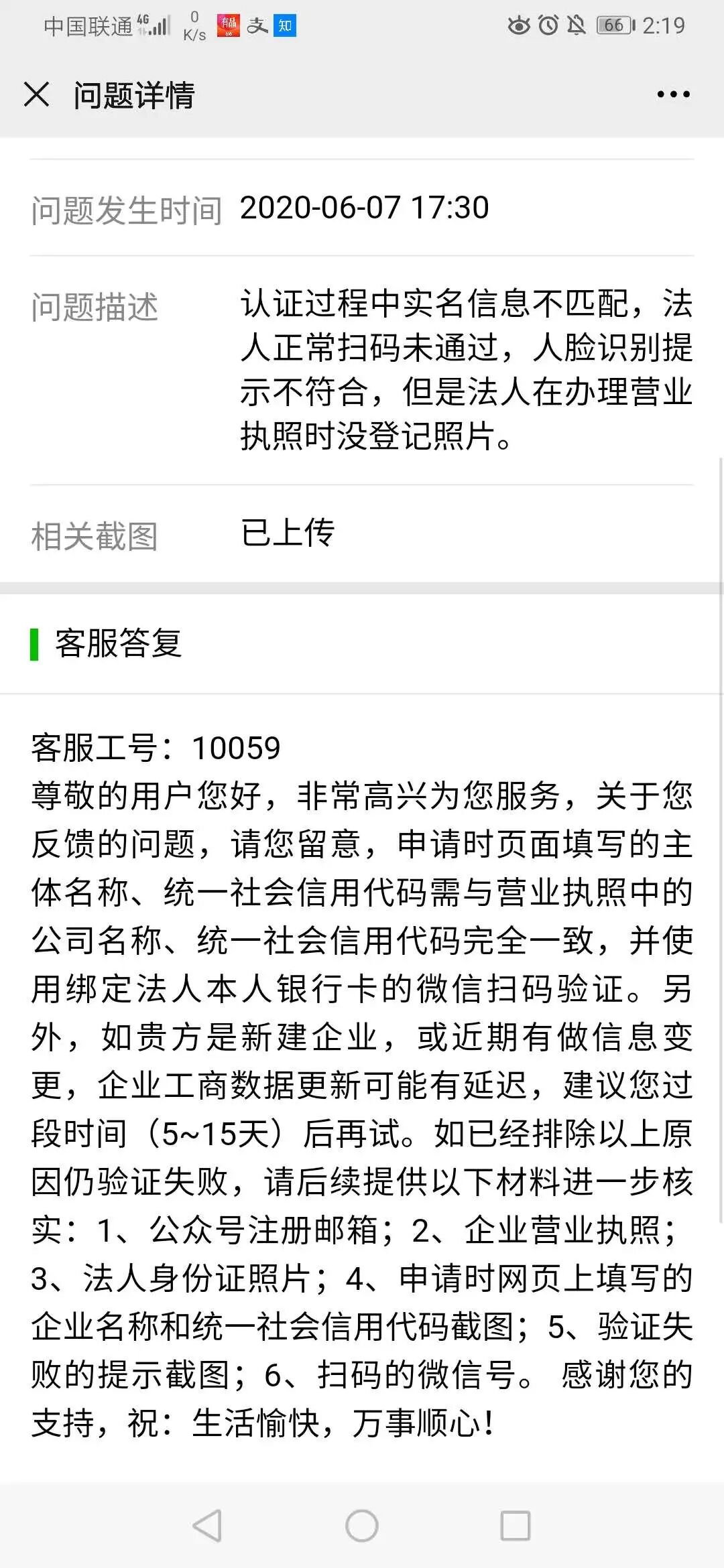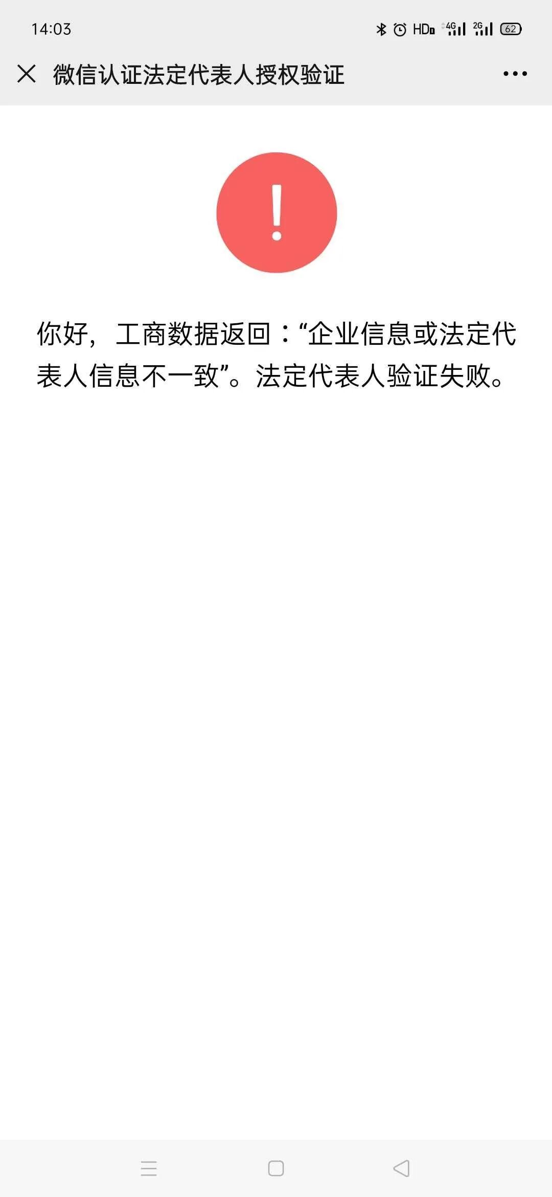 微信公众号认证过程中企业信息或法人信息不一致,验证失败。但法人注册营业执照时没要求登记照片。以身份证为凭证的话人脸识别通过不了。多次联系腾讯无果,官方电话打了数次,无一次接通,全部语音机器人,腾讯客服提交问题只解答,不协助处理结果。微信公众号想交钱都交不上去,服务何在?望尽快协调处理,服务质量能跟上。