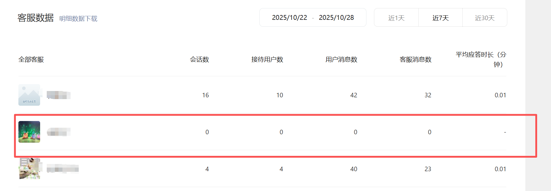 网页版客服端中,客服数据中排名第二客服人员数据显示错误,