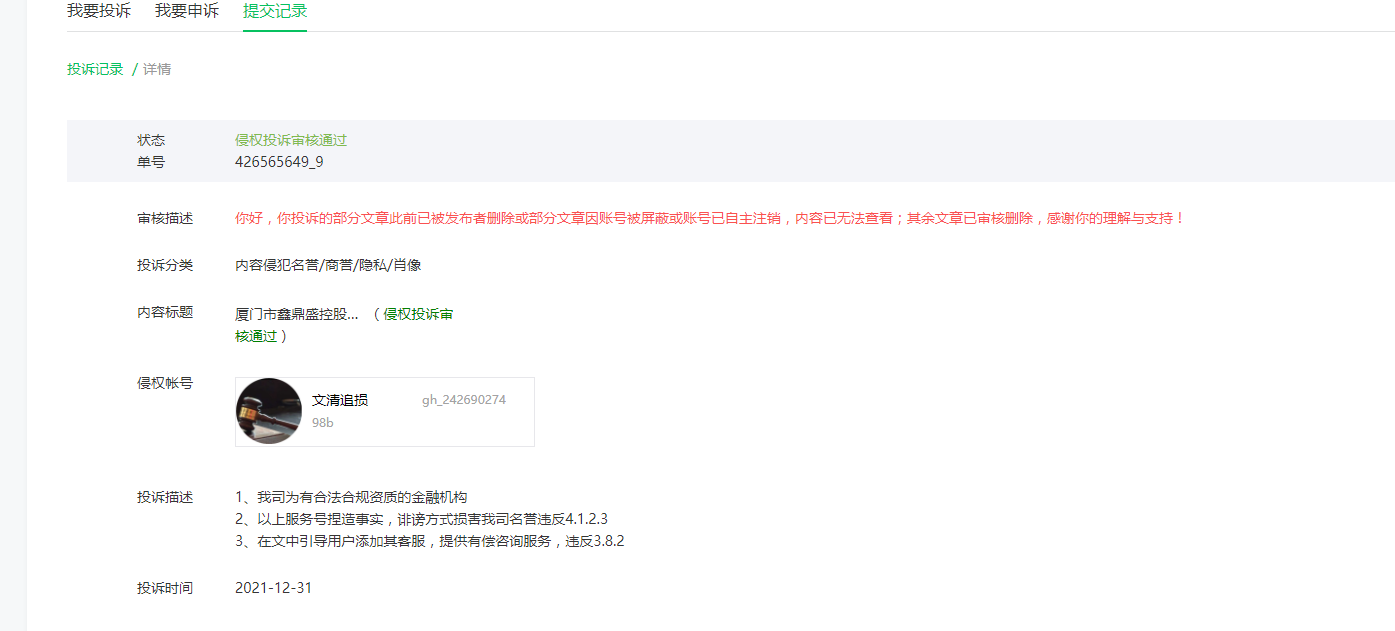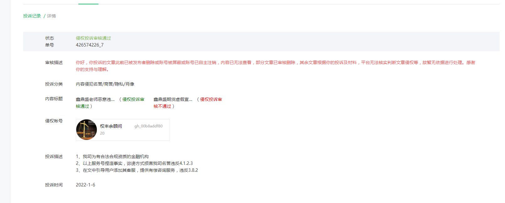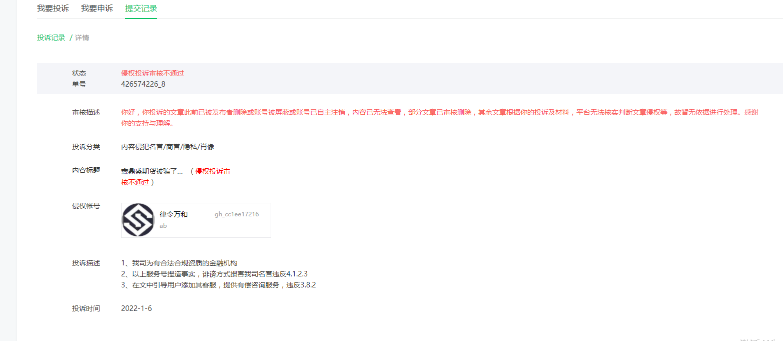 为什么第一投诉涉嫌帐号投诉成功后搜不到侵权文章了,现在投诉成功与否都能搜到侵权文章,审核描诉也都一样,这是什么情况?