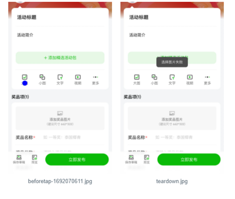 上传图片以后,你的【立即发布】按钮,还能点击吗,我不上传图片的时候,能点击,调用上传图片之后,就不点击了,也不报错。