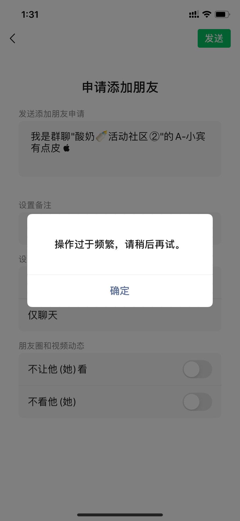 是真的离谱,加一个就频繁,频繁一整天,那你们做这个功能干嘛的
