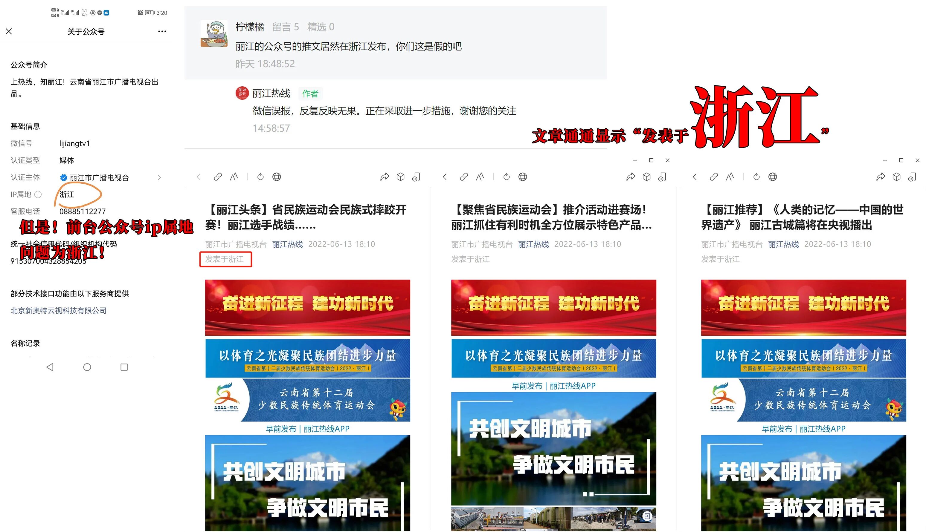 但是:前台公众号资料处“ip属地”显示为“浙江”,文章标题下“发表于”也显示为“浙江”,见图2