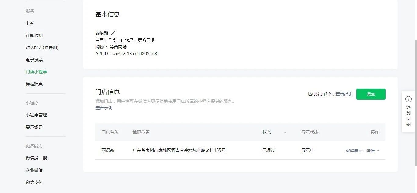 附近的小程序还是不显示,甚至把定位定在店铺的位置上仍然不显示。