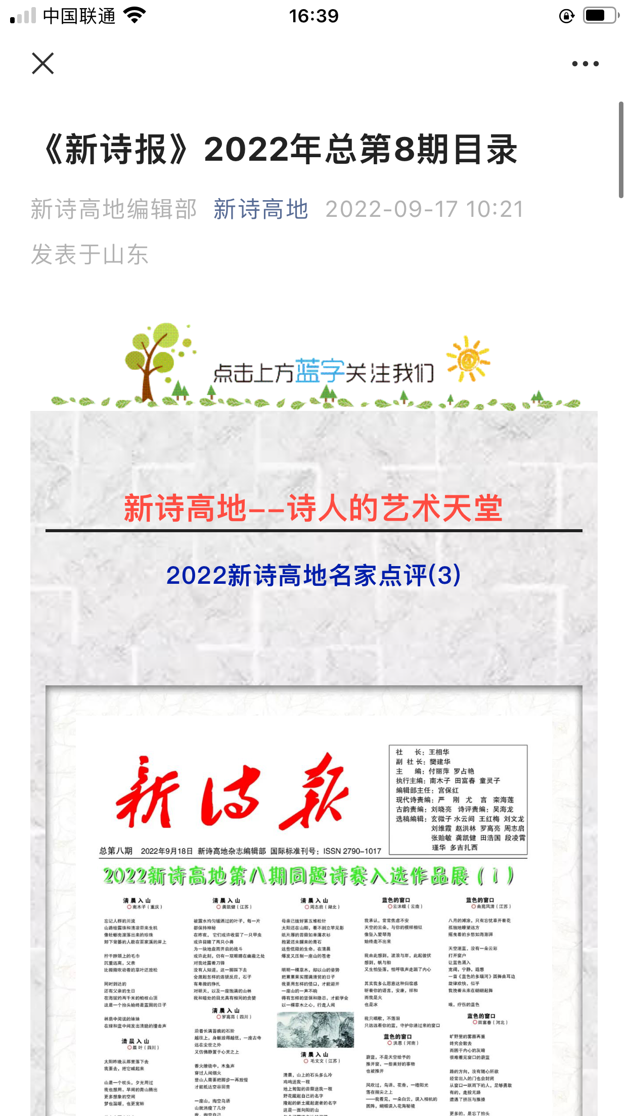 新诗高地诗群的原创作品《新诗报》电子版与目录帖子,被人恶意举报取消原创,并封禁到10月22日,望客服及时查明处理,为盼! gh_904b9f9c7b99