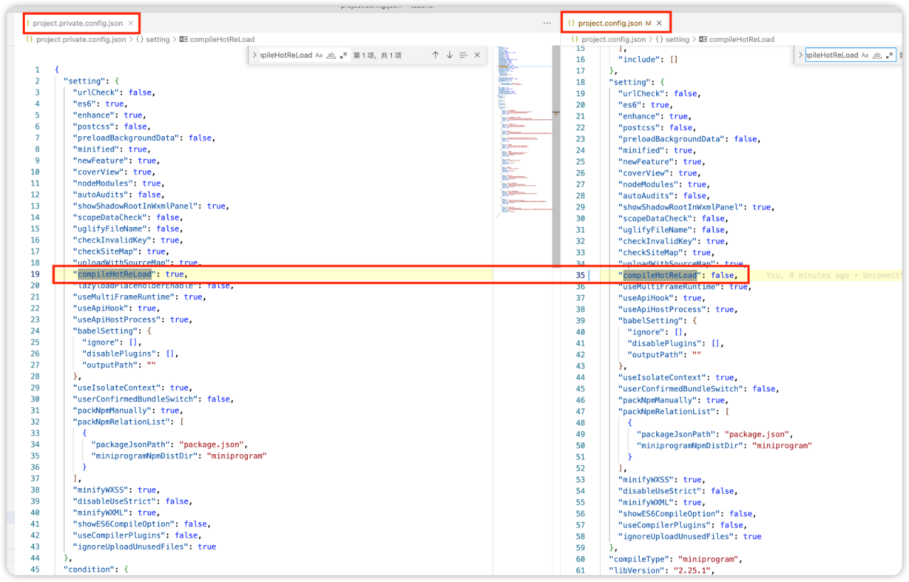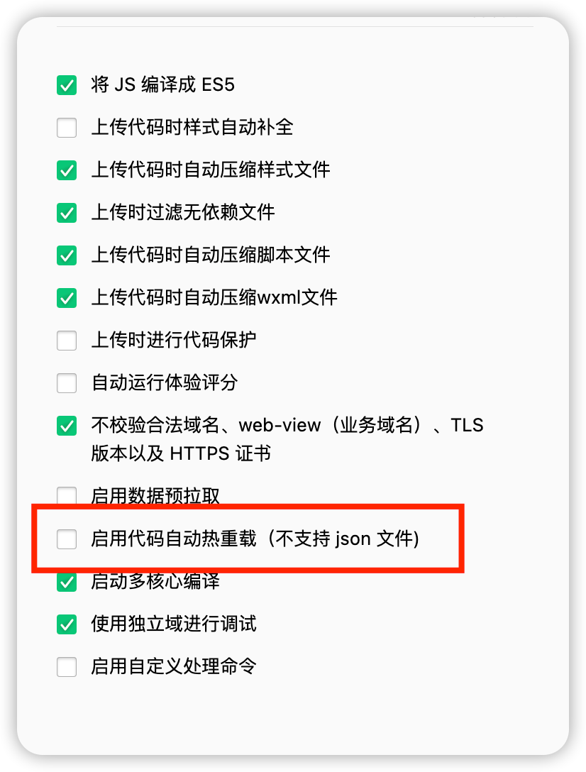 project.private.config.json中【compileHotReLoad】字段为【true】但开发工具中该选项未开启