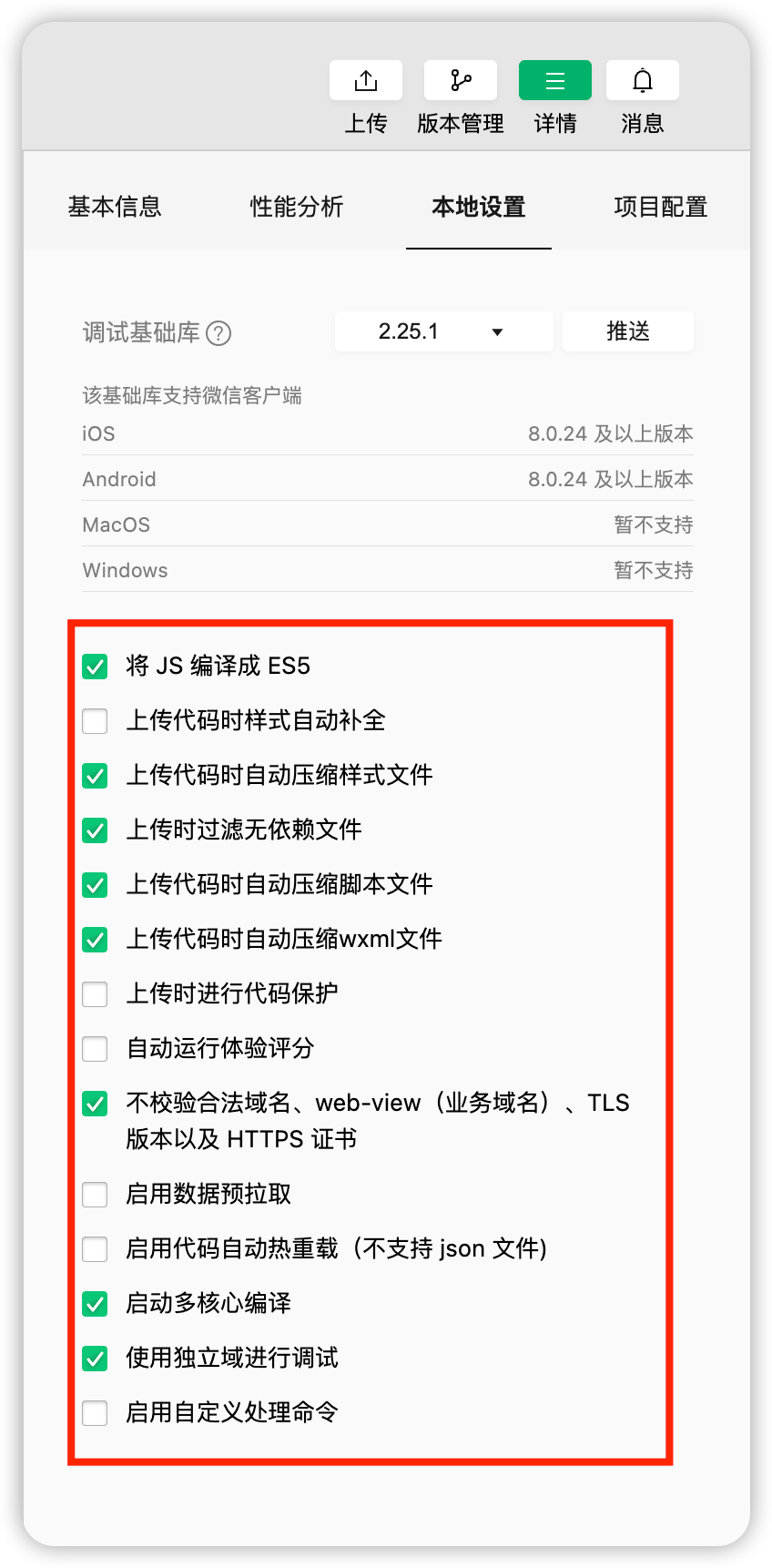 1、开发工具中更改设置是更新的project.config.json文件,如果按照文档中的优先级,应该更新的是project.private.config.json文件