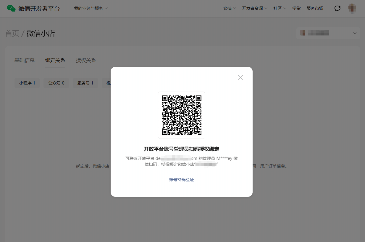 反过现先登录开放平台账号,再绑定小店,也是提示非管理员扫码。