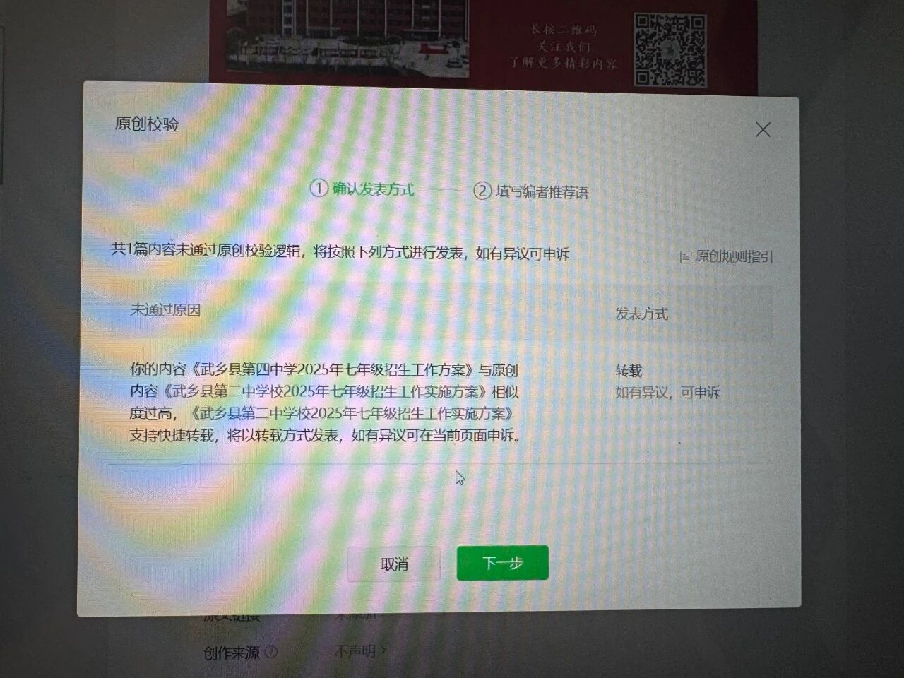 两所学校同时引用教育局文件,慢的一方已无法发表,显示高度相似,怎么解决?