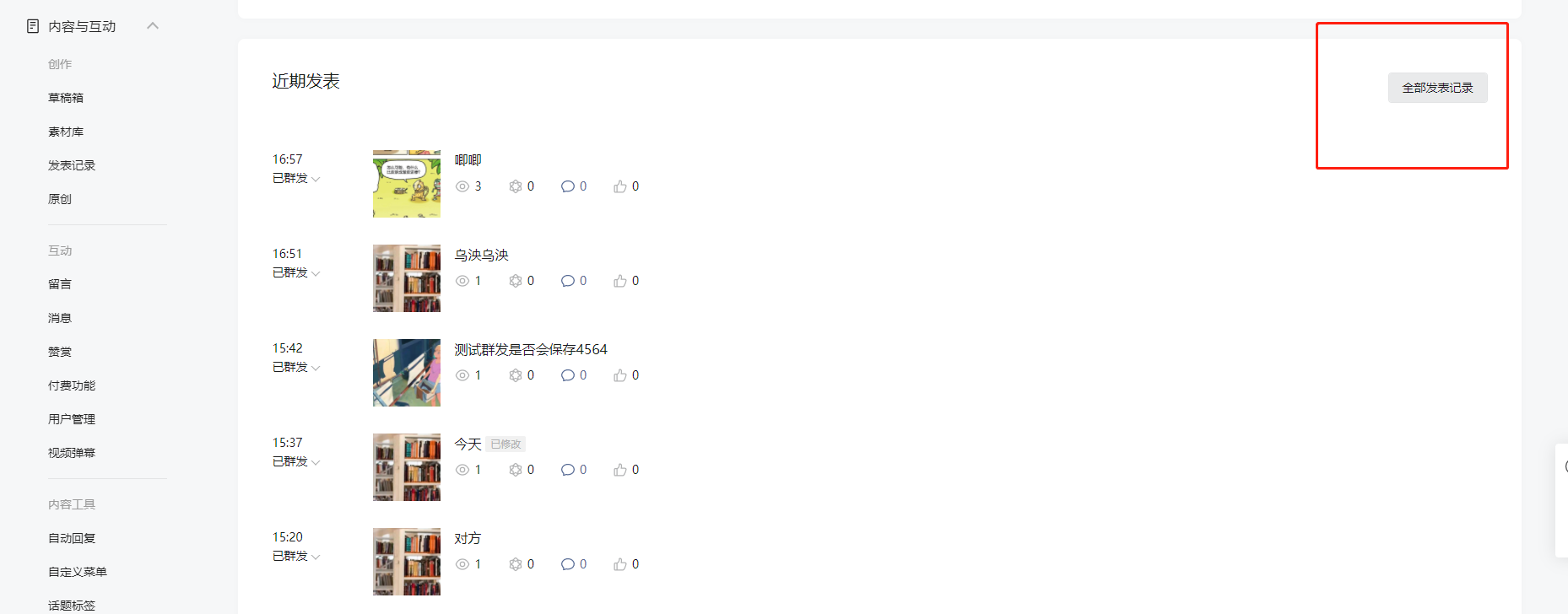 已群发或者发布内容依旧可以查看以及重复多次使用。
