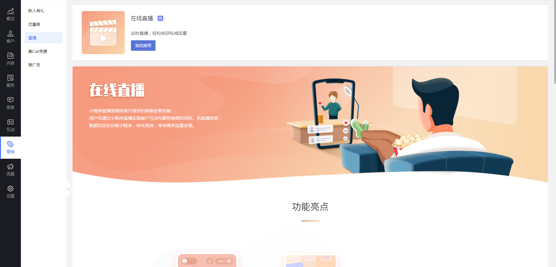 小程序直播结合商城去运营,直播可以嵌入商城,并且可以结合商城的活动,如优惠券、拼团、秒杀活动,来刺激直播间的转化。