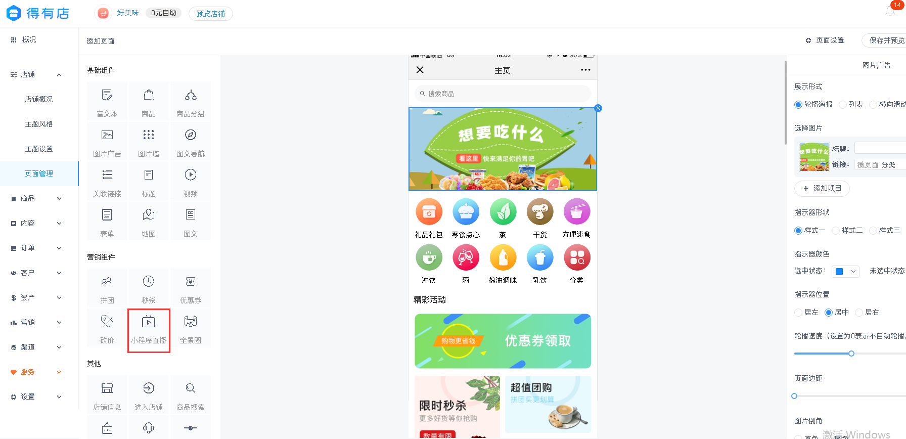 把小程序搭建好之后,可以在商城首页或导航位置插入直播组件,访问客户可以直接加入直播间。