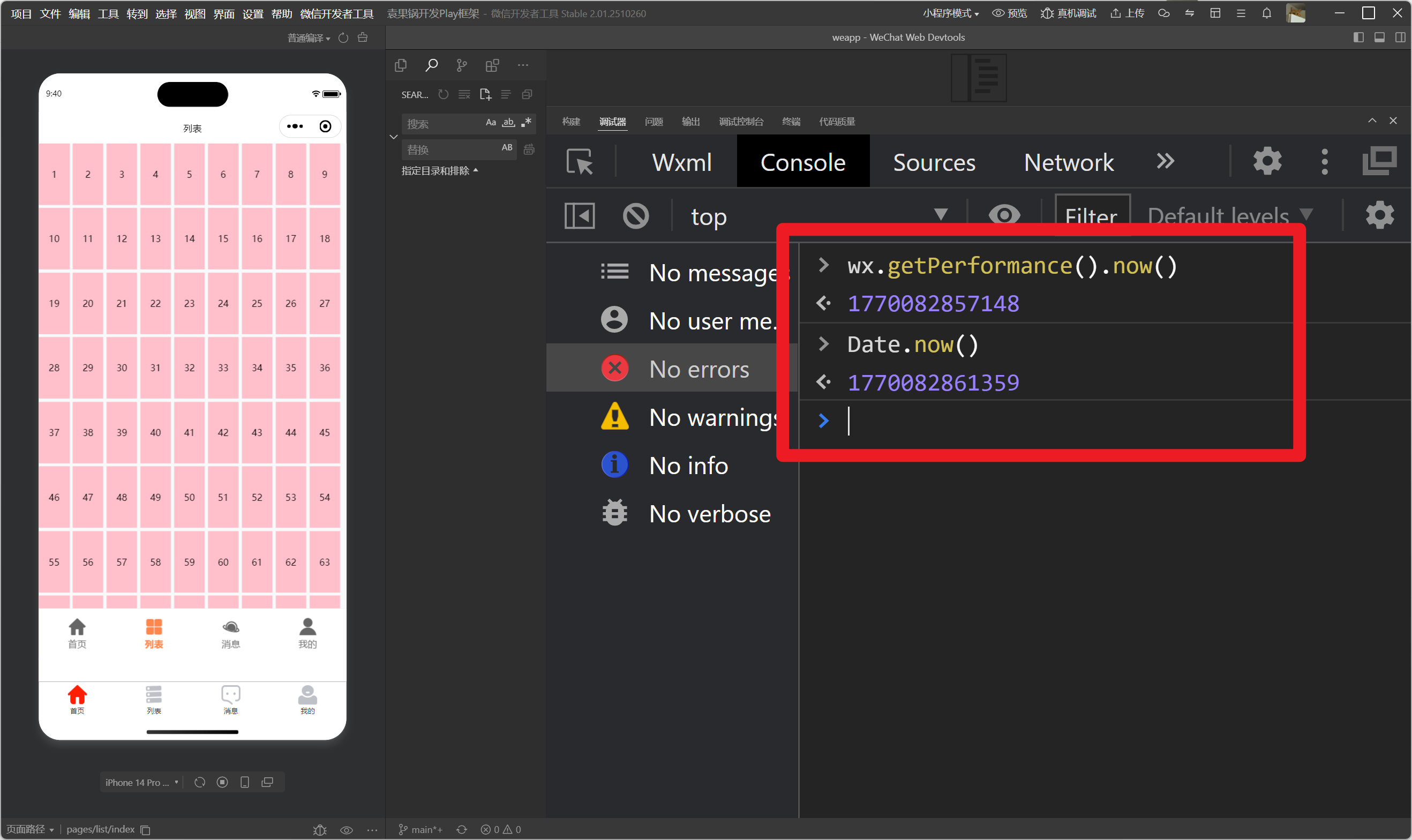 针对于这个函数,在真机(苹果/安卓)上都尝试过了,实验结果和模拟器一样,结论就是和Date.now() 一模一样