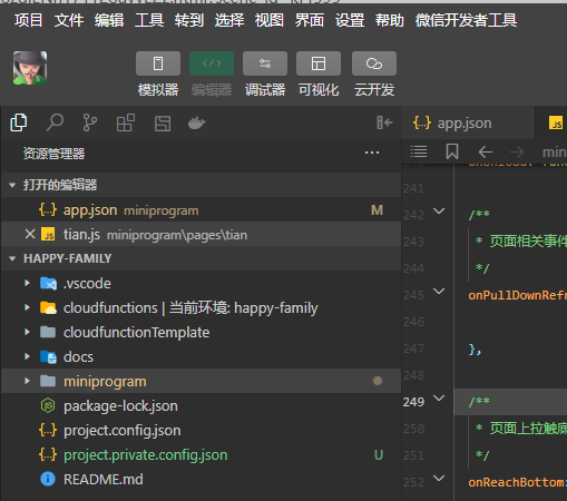 已经登录了账号,指定了当前环境,无法点击顶部“云开发”按钮唤出云开发的面板。