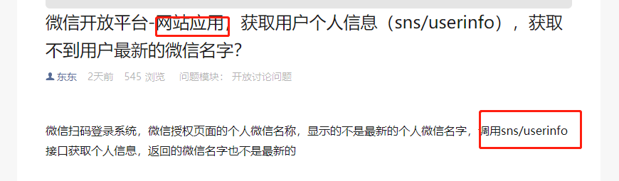 微信扫码登录系统,微信授权页面的个人微信名称,显示的不是最新的个人微信名字,调用sns/userinfo接口获取个人信息,返回的微信名字也不是最新的