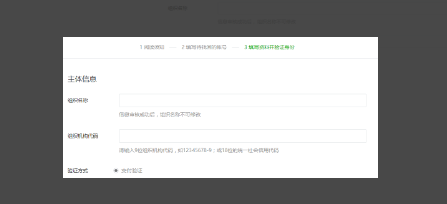 百度查说如果没有管理员可以按下面方法找回账号,但是我这边没有找到填写组织名称等信息的入口
