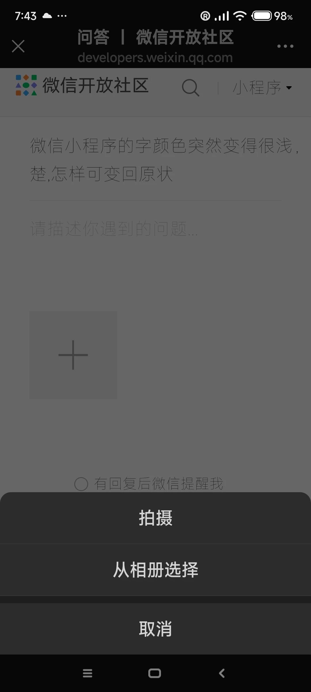 我的微信小程序的字颜色突然变得很浅,甚是看不清楚写什么字,怎样可变回原状?