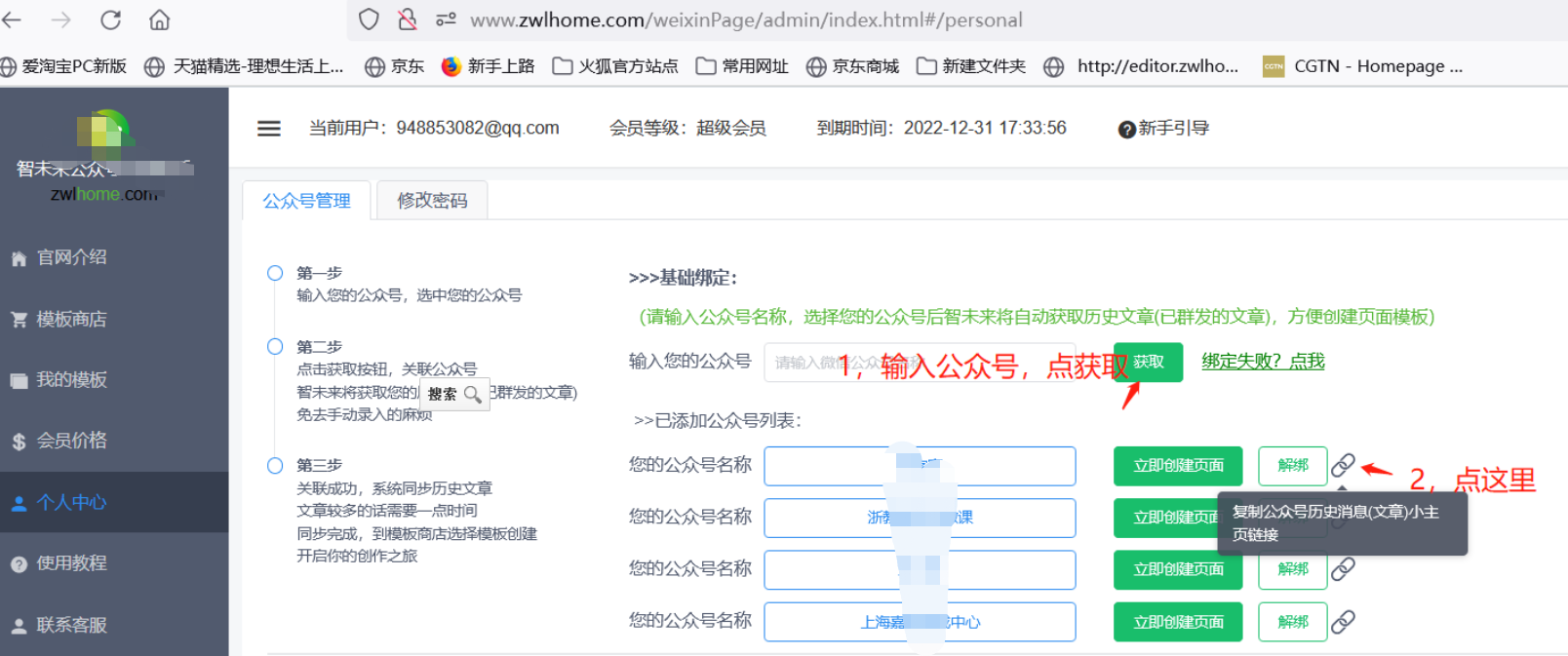 目前这个界面微信关掉了。但是第三方可以获取,例如通过智未来公众号助手,可以通过两个步骤就获取得到楼主想要的链接: