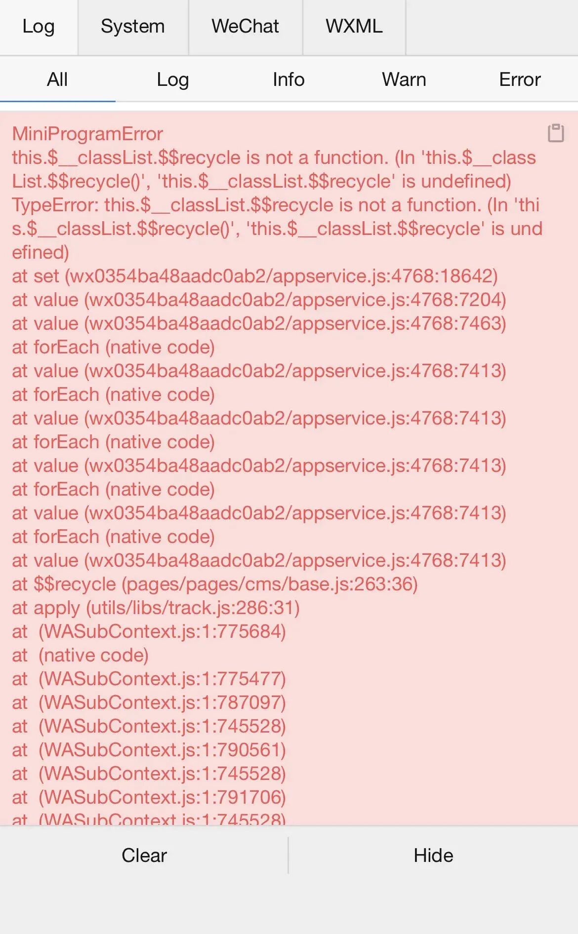 在vue2中,有的组件会报<TypeError: this.$_classList.$$parse is not a function.>错误,退出页面的时候报<TypeError: this.$_classList.$$recycle is not a function.>,请问这个怎么解决?暂时只在ios机型12以下发现这种问题。