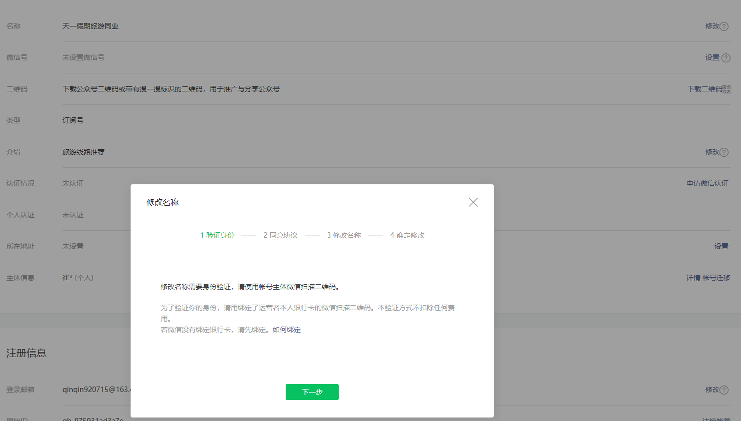 修改微信名称,显示用账号主体的微信扫描二维码,但是没有出现二维码,无法进行下一步