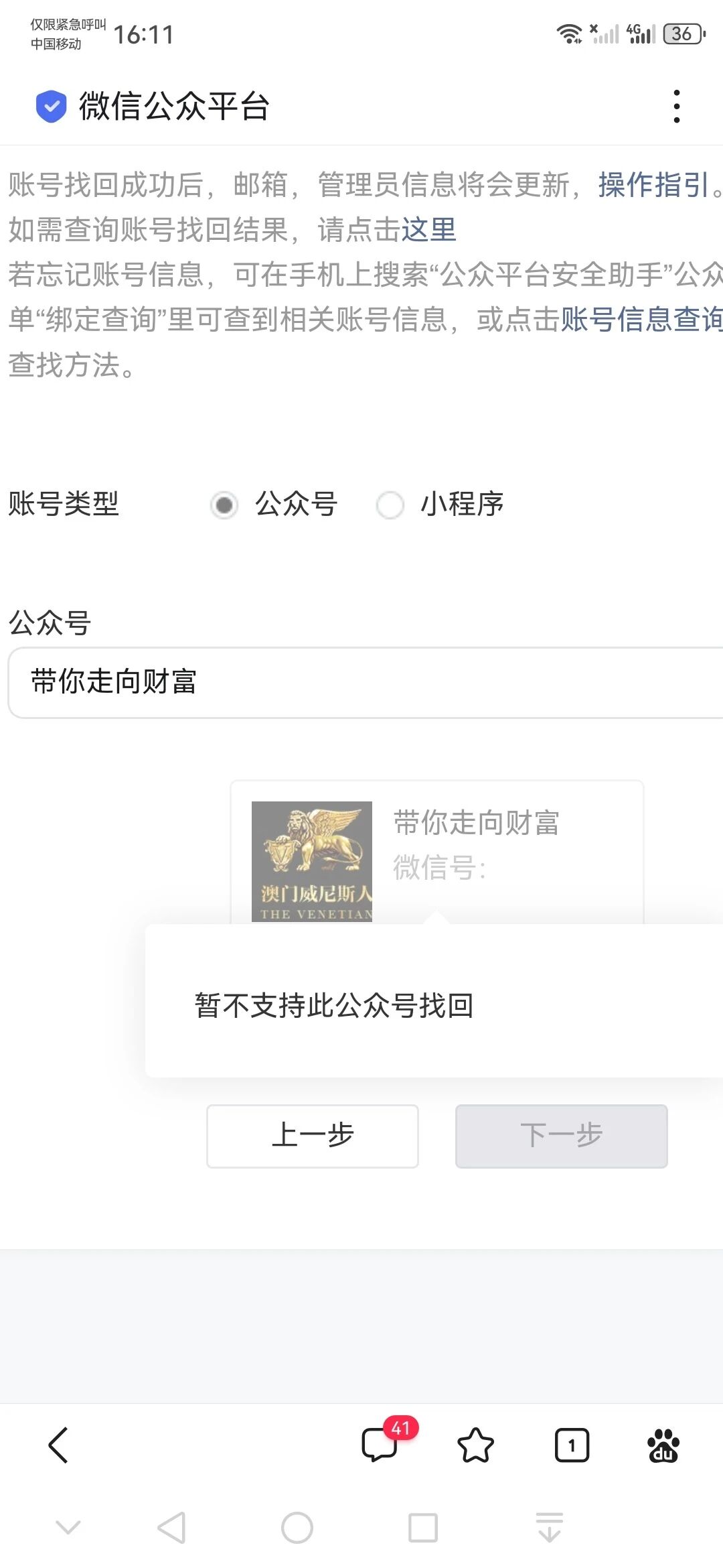 “暂不支持此公众号找回”是什么原因呢?我不能找回又怎么注销呢?谢谢!