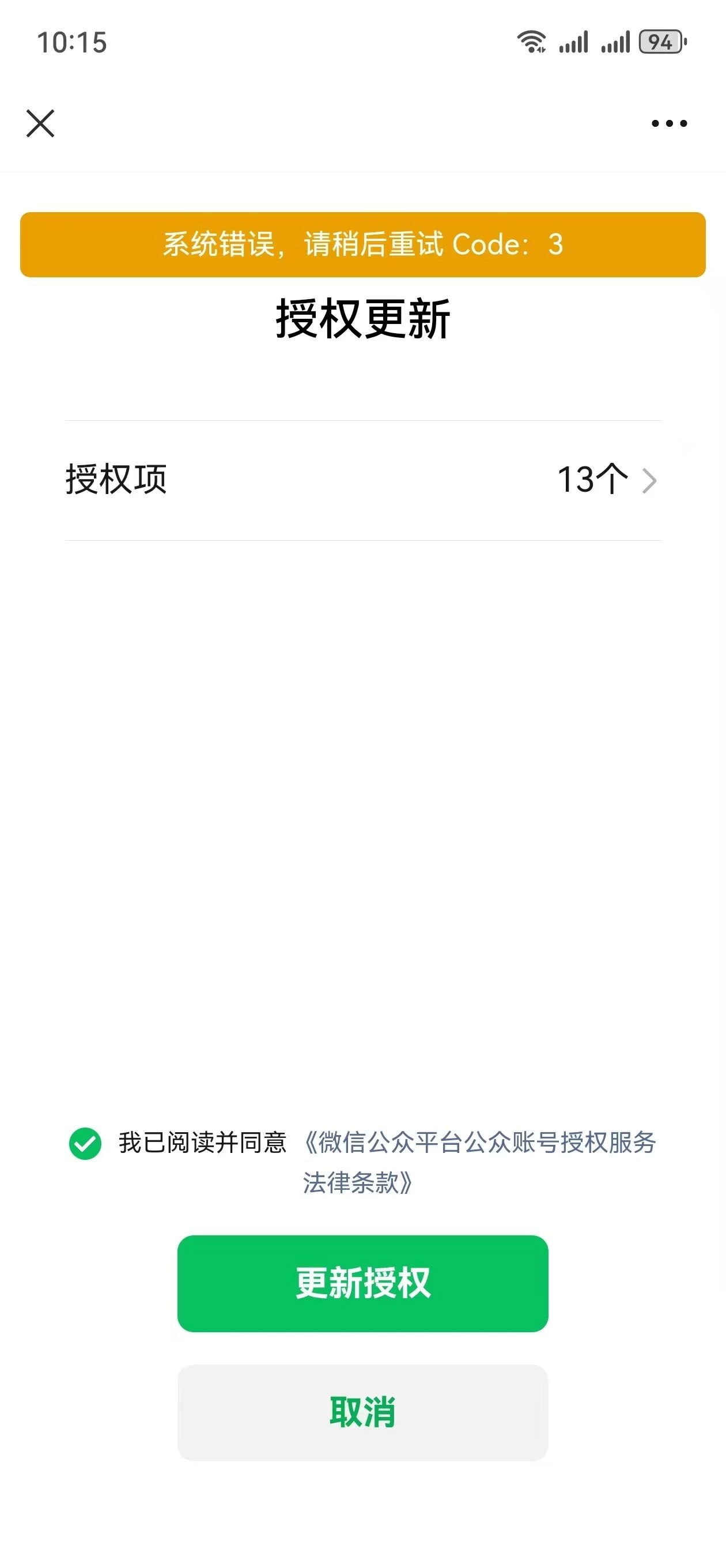 小程序授权时提示,系统错误,请稍后重试 Code:3,如何解决?