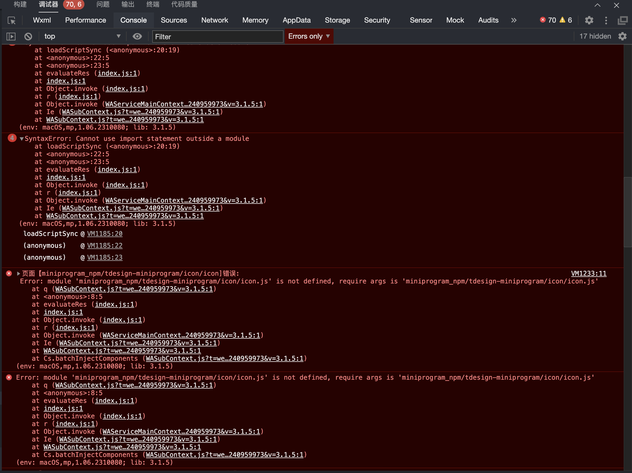"tdesign-miniprogram": "^1.2.3"这个版本更新完就不能用了,一大堆第三方组件和各种模块找不到,只能回退上个版本了,上个稳定版就不会找不到