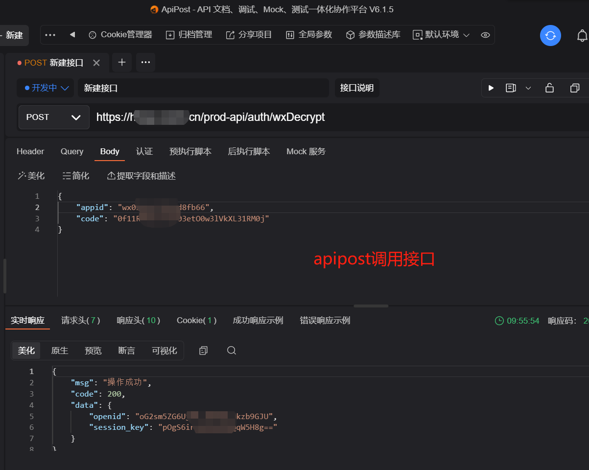 2、疑点:在接口调试工具apipost接口能正常请求并返回内容