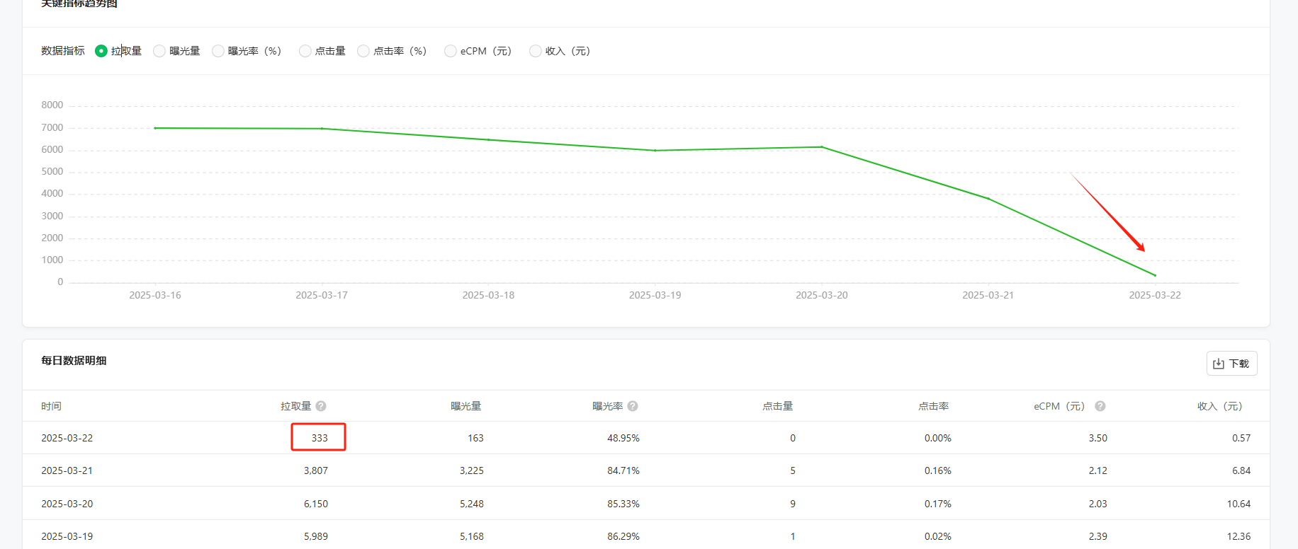 广告拉取量很低很低,跟其他比差太多了。而且阅读量没什么变化