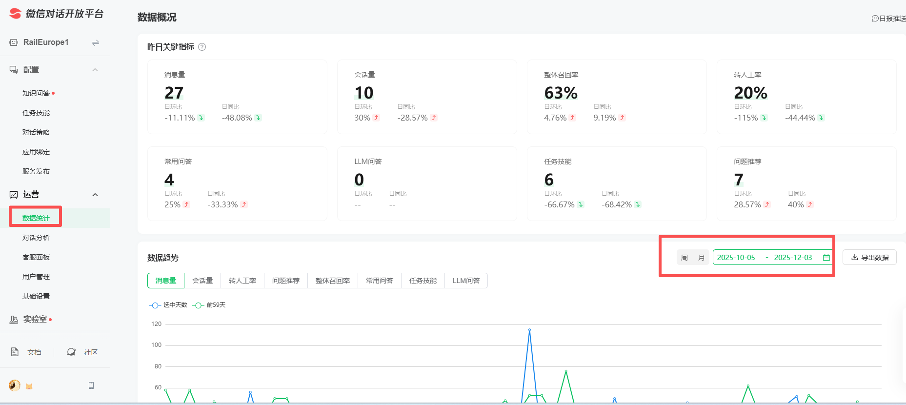 数据统计模块只能导出10月到12月的数据,更早之前的数据无法选择。