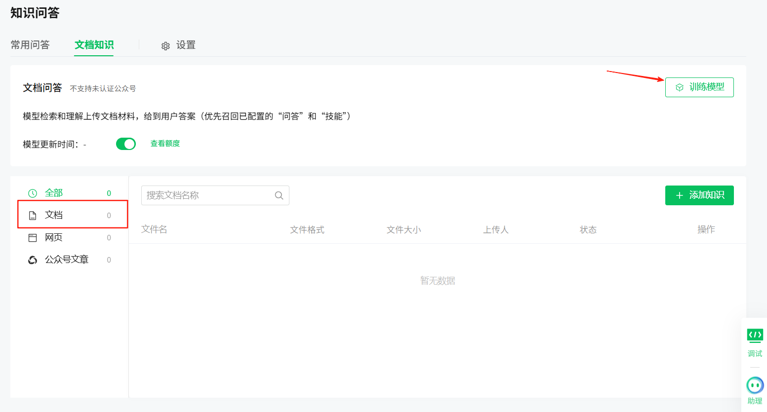 参考文档2:https://developers.weixin.qq.com/doc/aispeech/platform/dialog/doc2faq-document.html