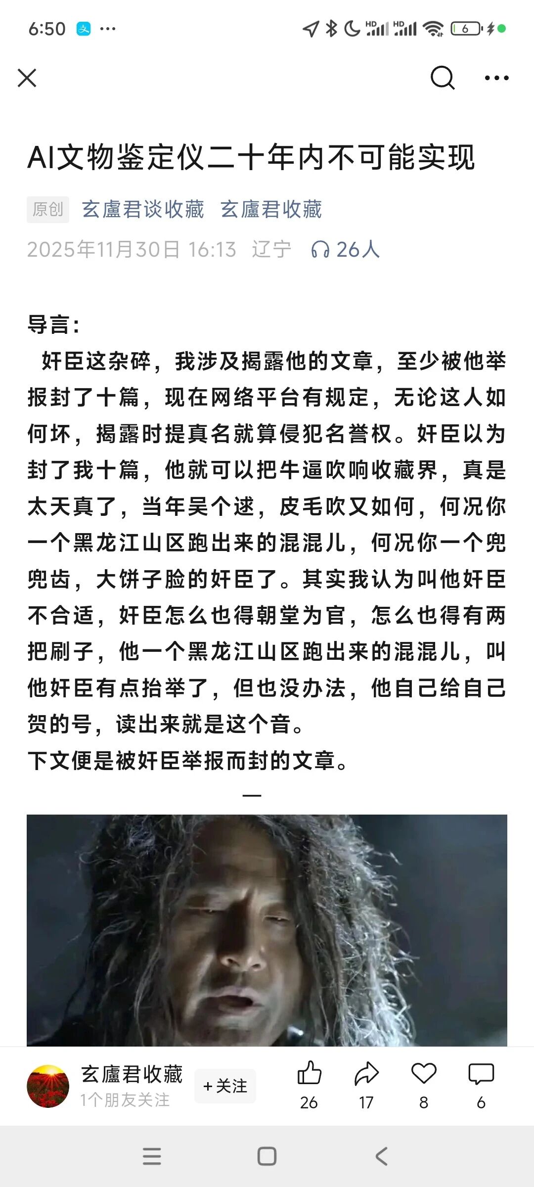 微信公众号“玄庐君收藏”“”账号发表十多篇攻击李鉴宸文章,我们也十多次投诉删除,网络水军攻击行为,请问你们我们保留民事诉讼权利,起诉你们微信公众平台